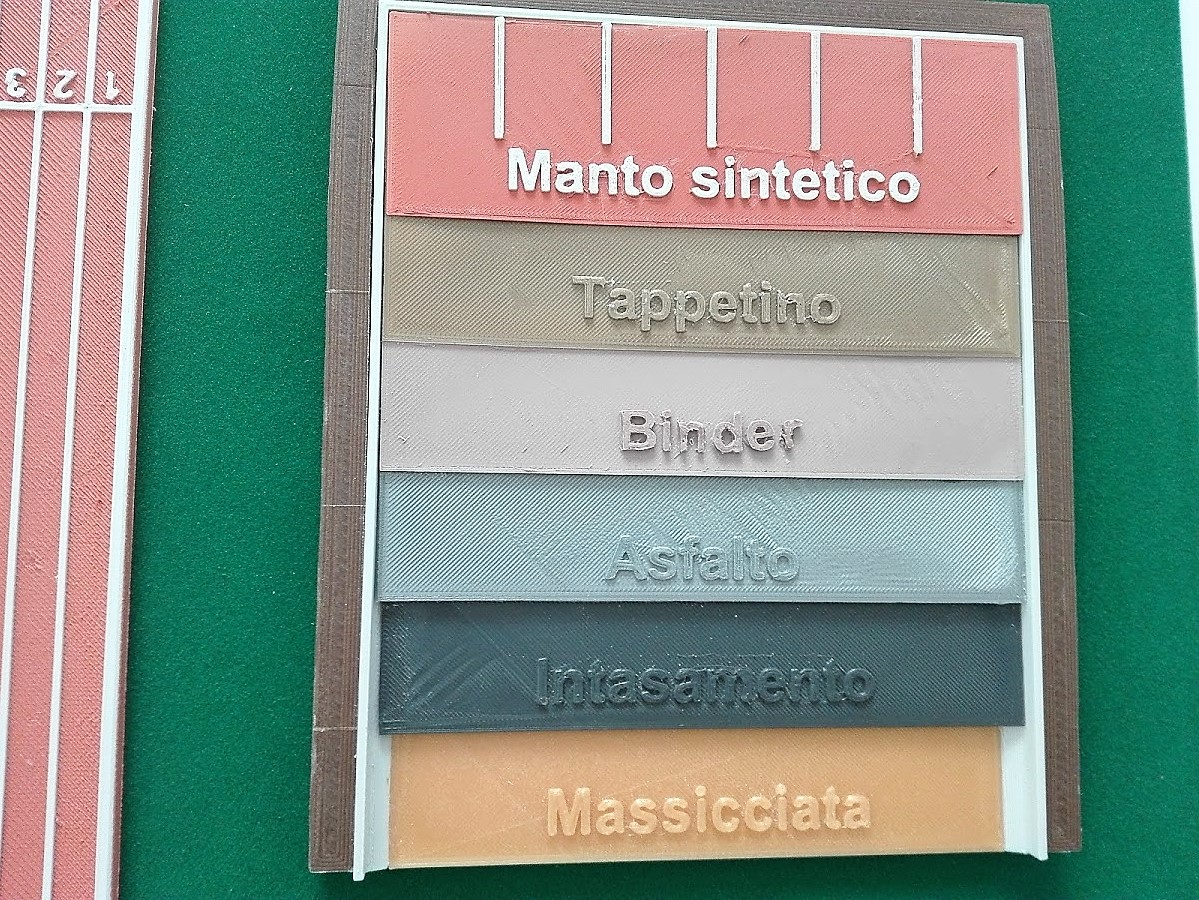 - le strisce di delimitazione delle corsie sono state stampate in PLA White;