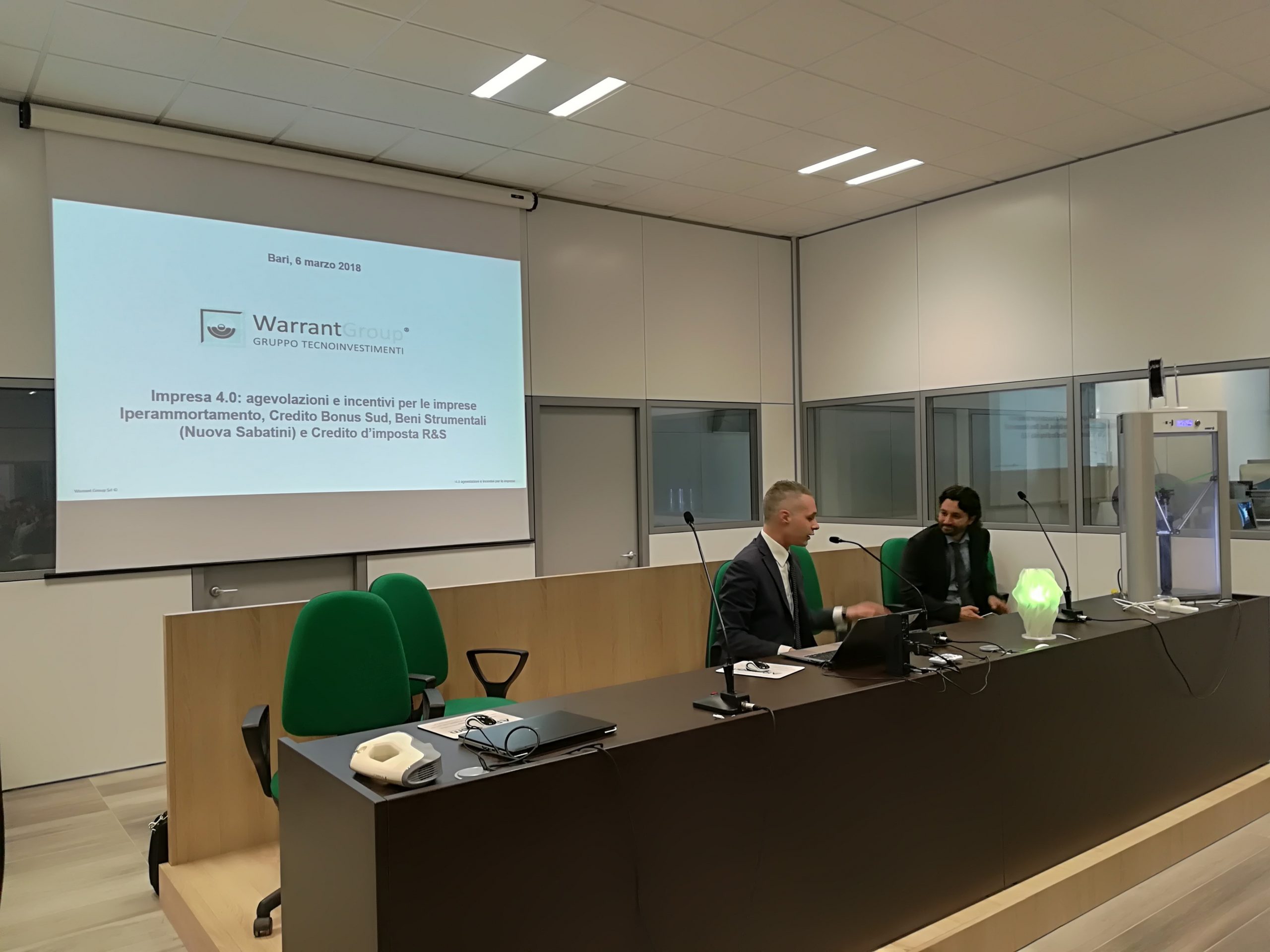 Dopo di noi, a conclusione dell’incontro, è intervenuta la Società Warrant Group S.r.l., che ha esplicato tutte le agevolazioni fiscali e normative previste al Piano Nazionale Industria 4.0 (ora Impresa 4.0) a sostegno degli investimenti concernenti l’innovazione e la competitività delle aziende.